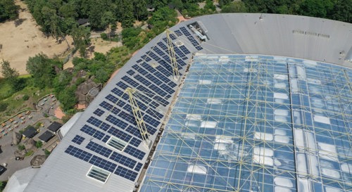 We have also created our own 'solar panel park' on the roof of the Safari Meeting Centre. With the energy that these solar panels generate each year, we can run all the electrical equipment—pumps, lighting, filter systems—in the Mangrove, and we still have a nice surplus of energy for other purposes in our park! The Mangrove is heated and, on very hot days, cooled using the ATES unit.