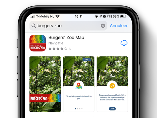Discover the animals at Royal Burgers' Zoo using the free app: the Burgers' Zoo Map! This app helps you navigate Burgers' Zoo. Choose one of the standard routes or create your own. Find your way using a map or try the augmented reality view—the arrows always point you in the right direction.